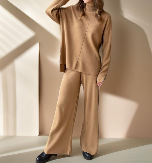 سترة طويلة الأكمام فضفاضة عارضة محبوك مجموعة