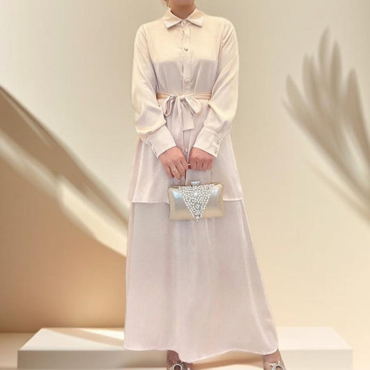 تنورة طويلة متواضعة ومجموعة توب بأزرار لأسفل
