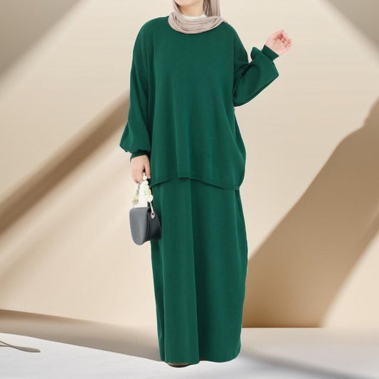 طقم تنورة ماكسي محبوكة مكون من قطعتين مع بلوزة من رانيا