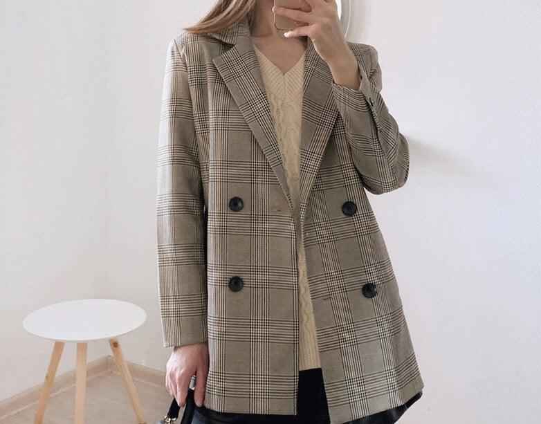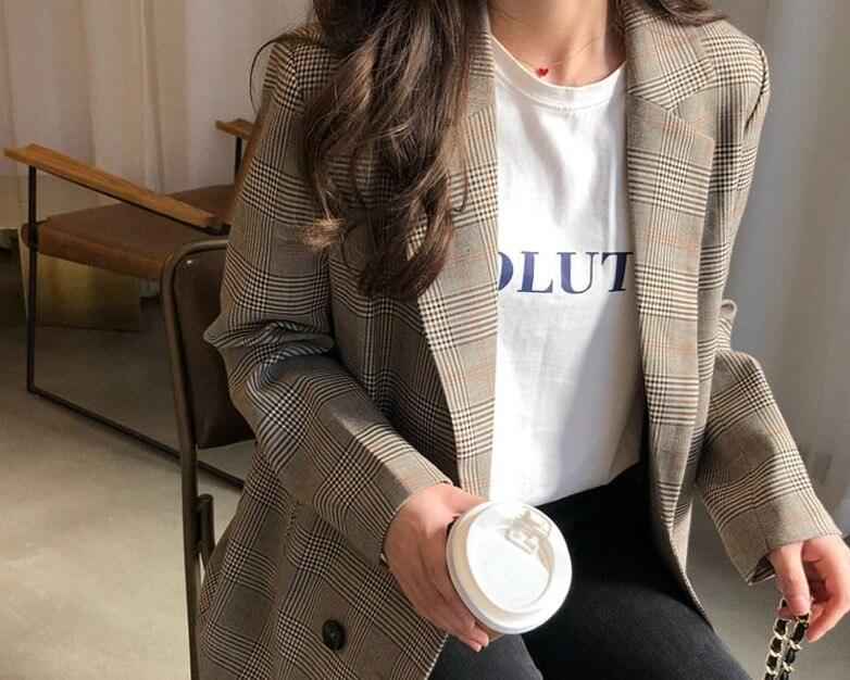 • Plaid pattern office blazer