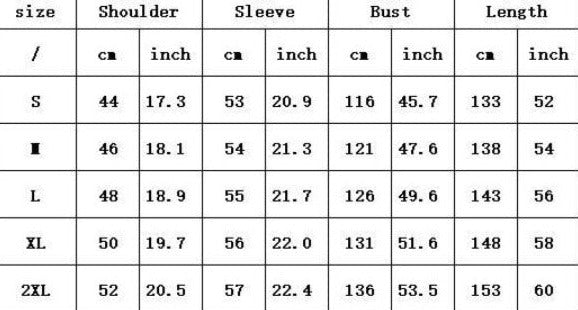 - Please check the size chart carefully before you buy the item. This is the best way to ensure that you get the right size. The size chart will typically list the measurements for the garment, such as the bust, waist,sleeve and length measurements. You can compare these measurements to your own measurements to find the right size.