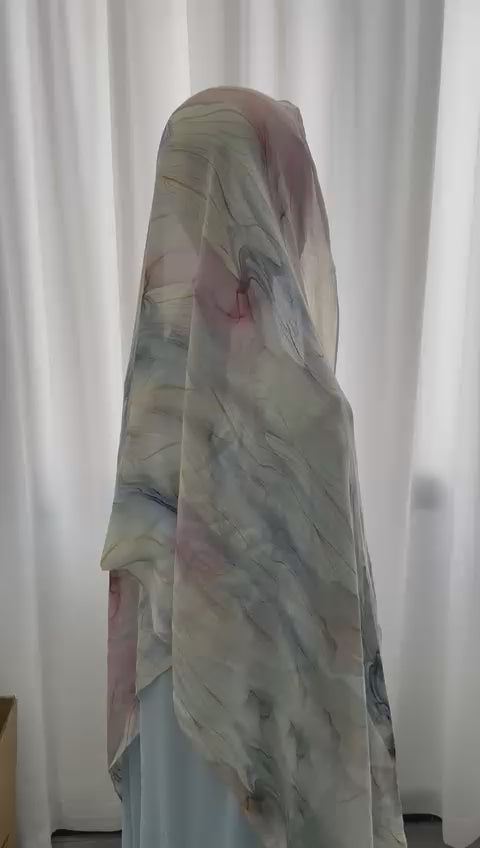 Abbraccia la tranquilla eleganza del nostro Sogno di agata Hijab in modal. Questa squisita stampa evoca la bellezza ipnotica della pietra naturale, con morbidi e fluidi strati di blu tenui, rosa tenui e crema caldi, intrecciati con delicate venature dorate. Aggiunge un'aria di sofisticata calma e lusso discreto. Realizzato nel nostro esclusivo modal 100%, questo hijab offre una sensazione eccezionalmente traspirante, morbida e leggera, garantendo comfort e un elegante drappeggio.