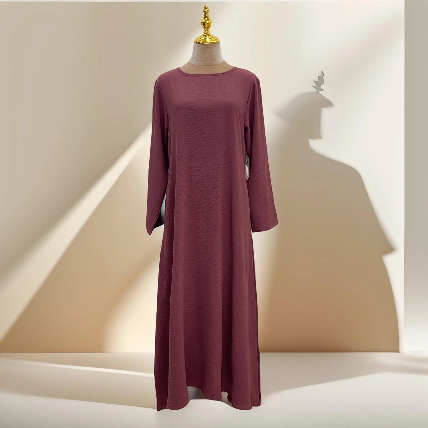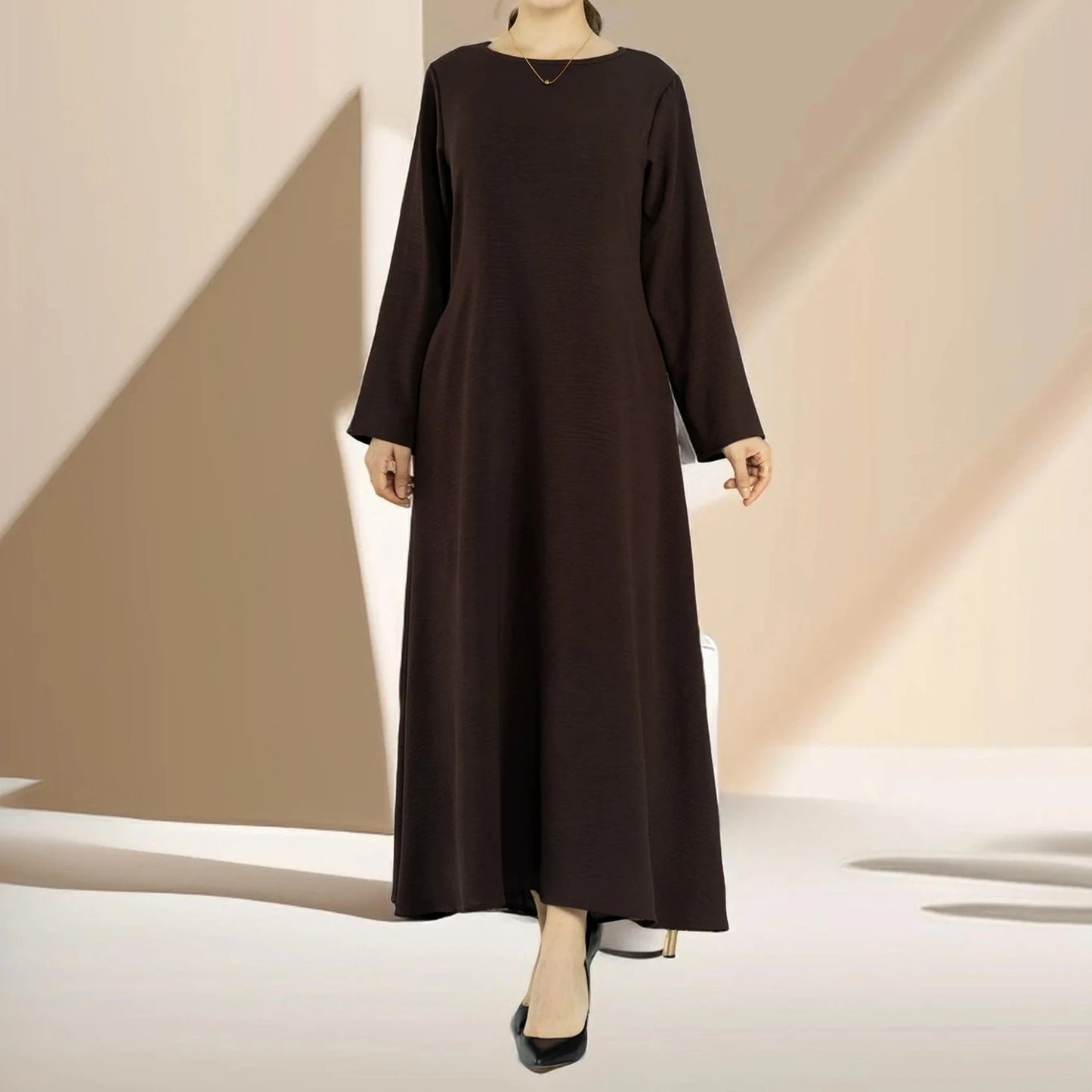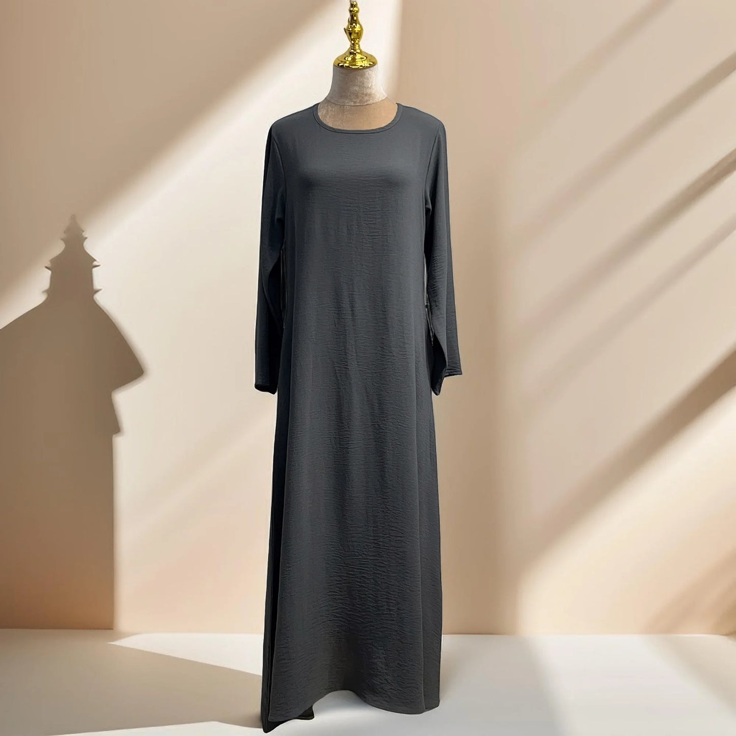 Introductie van de Dalia losse slipdress, perfect voor de bescheiden modeliefhebber! Deze abaya binnenjurk heeft een effen kleur, rimpel polyester stof en een losse casual design. Het opvallende kenmerk van deze jurk zijn de diepe zakken, die een praktische en stijlvolle oplossing bieden om uw benodigdheden met gemak mee te nemen. U hoeft zich geen zorgen meer te maken over waar u uw telefoon, lippenstift of kleine accessoires kunt bewaren-onze jurk heeft u gedekt!