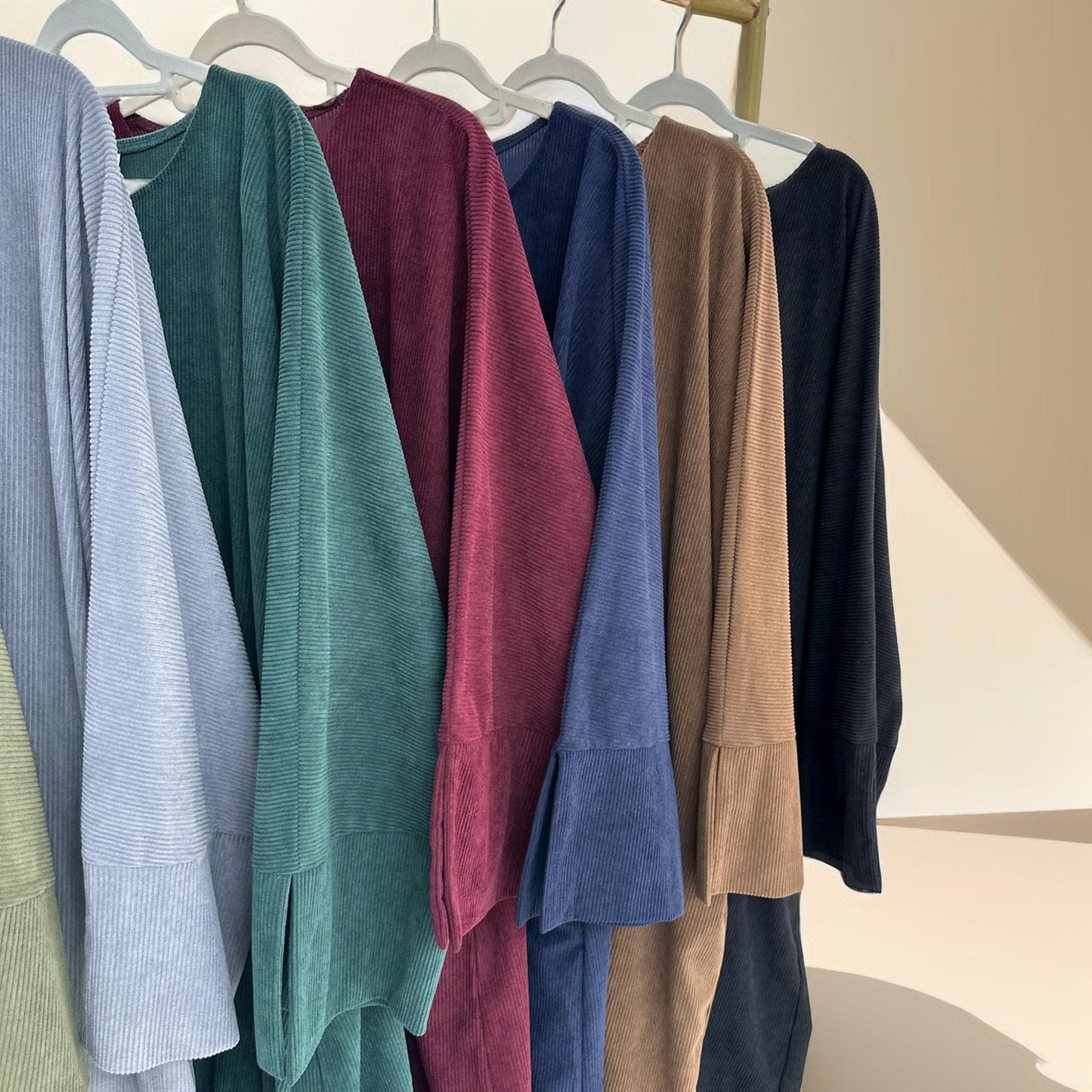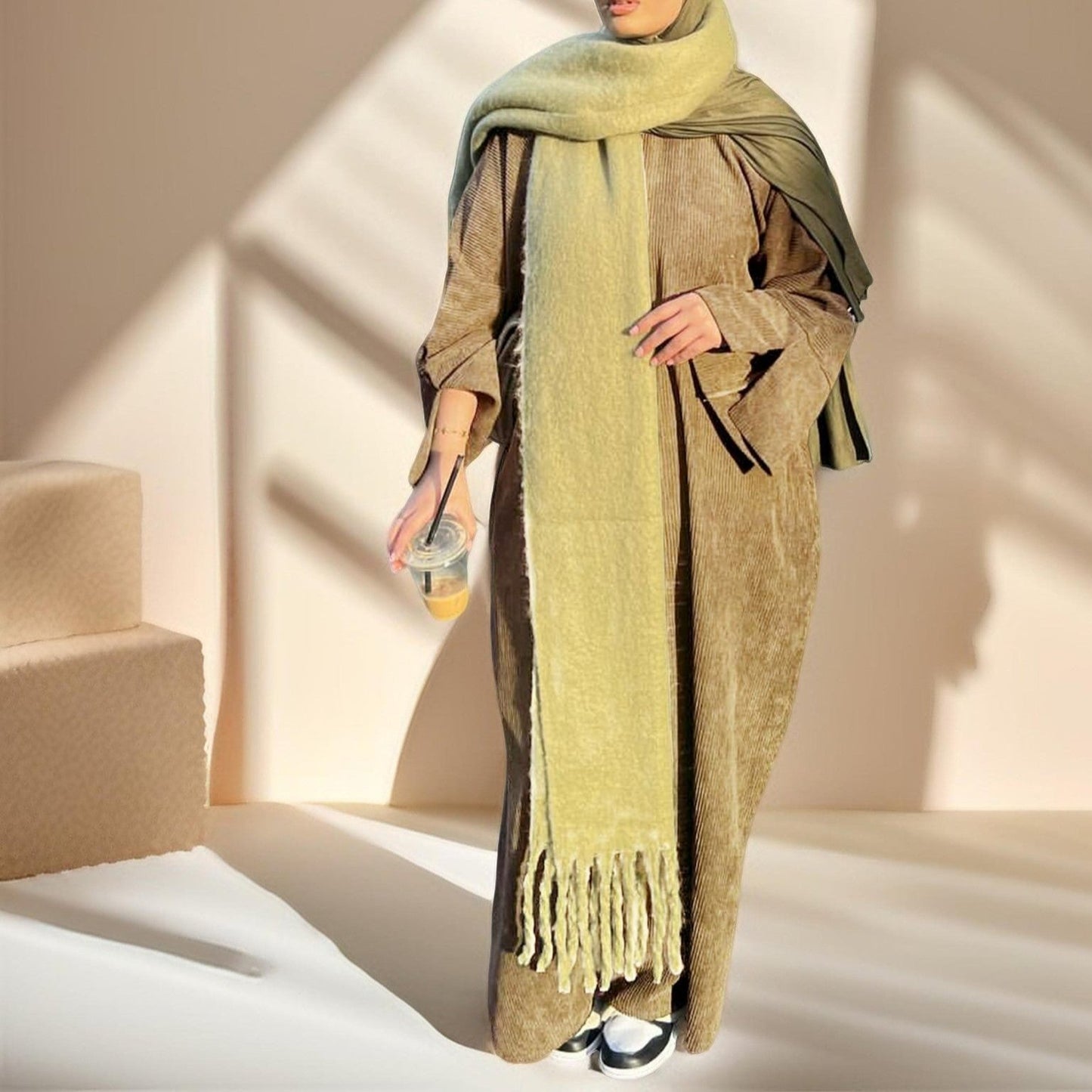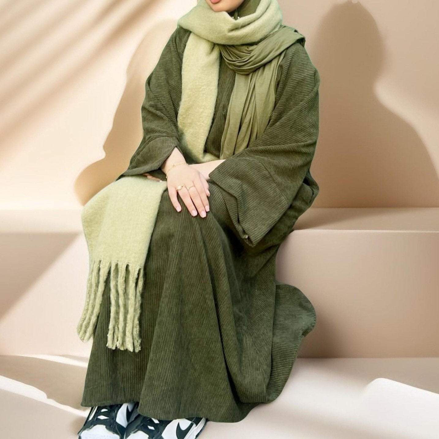 Indulge in the epitome of winter elegance with the Autumn/Winter Warm Corduroy Abaya. Crafted from thick corduroy polyester, this luxurious piece offers unparalleled softness and warmth, keeping you cozy and stylish throughout the season. The versatile colour palette, including timeless classics like Black, Coffee, Dark Green, and Gray, as well as the newly added captivating hues of Wine Red, Mocha, Navy, and Army Green, ensures you'll find the perfect match for your personal style. The thoughtfully designed slit sleeves add a touch of modernity and grace, making this abaya a truly exceptional choice for any occasion.