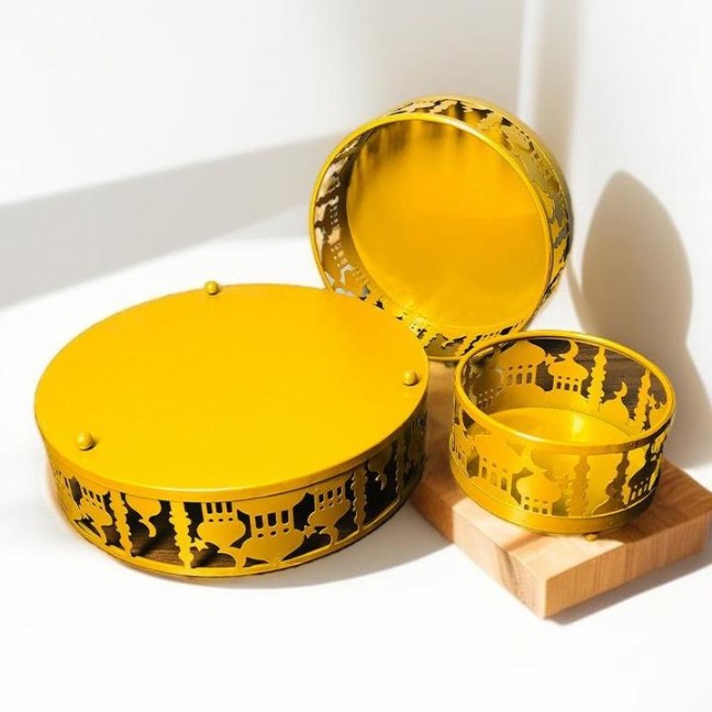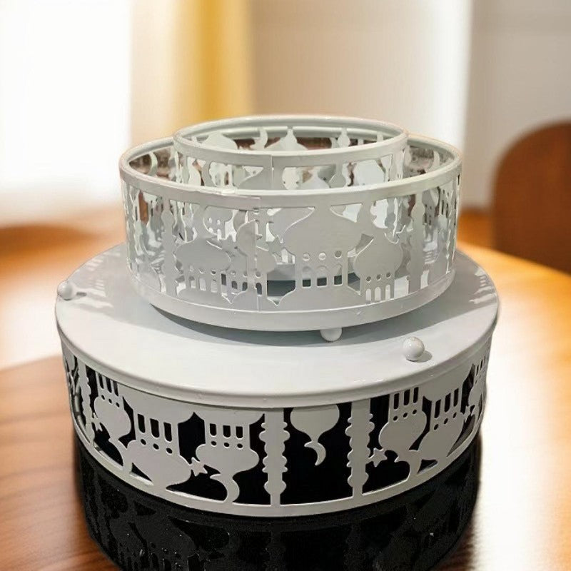 Bu Ramazan ve Bayram sezonunda bu çarpıcı mutfak eşyalarıyla evinizi şenlik ruhuyla doldurun. Yüksek kaliteli demirden yapılmış ve güzel bir kale motifiyle boyanmış, pavyonlu bu geometrik şekilli süsler her mekana bir zarafet dokunuşu katacaktır. Şenlik dekorunuzu tamamlamak için görkemli altın veya klasik beyaz renkte 3 parçalı bir set arasından seçim yapın. Kutlamanıza bu lüks eklemeyi kaçırmayın!
